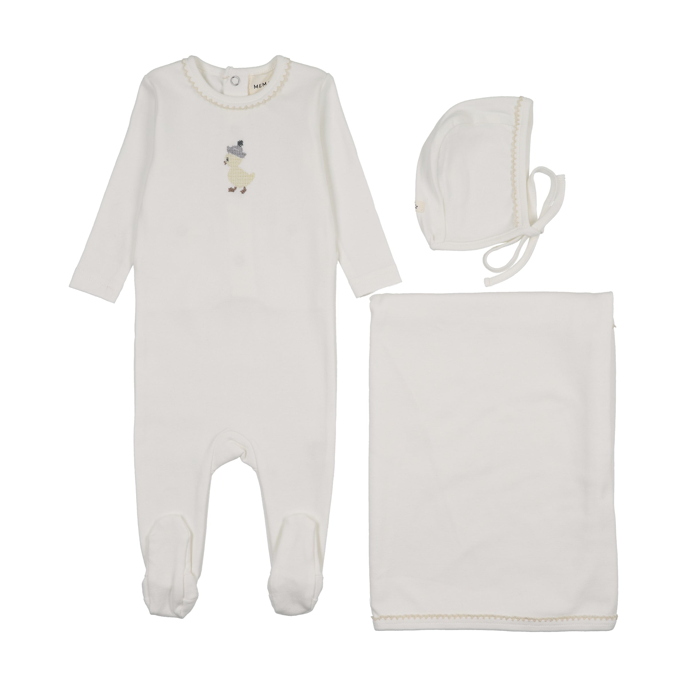 Mema Knits Embroidered Layette Set - WW/Yellow Duck